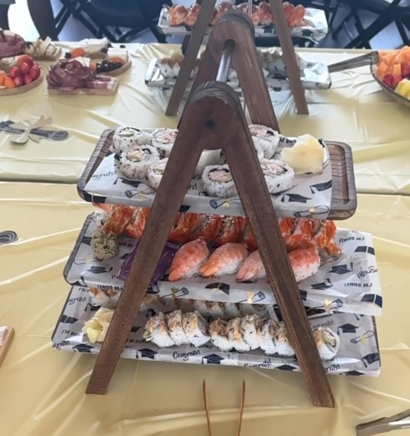- 1 pyramid-style wooden serving rack