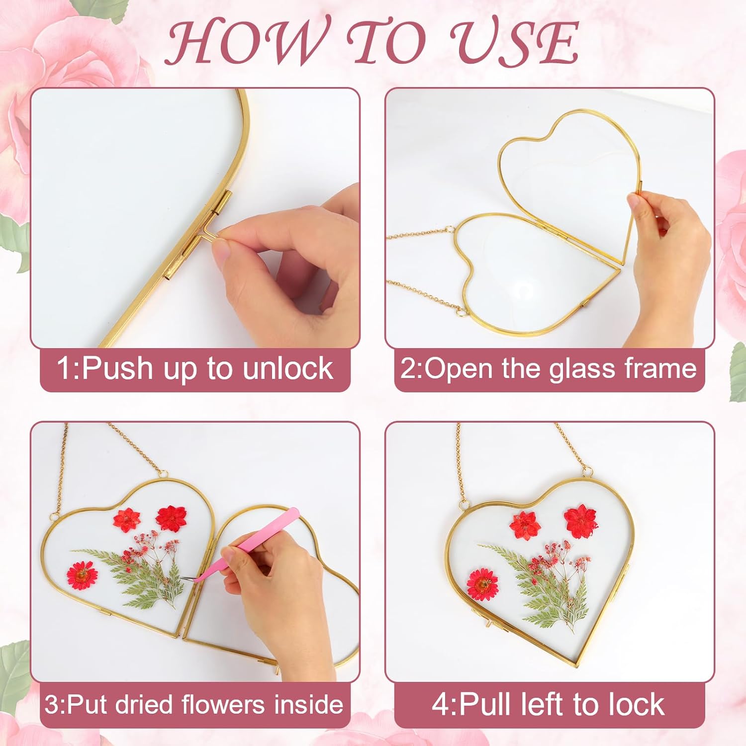 Our pressed picture frame adopts a sturdy double-layer glass design. Just slide the metal lock on the top to easily replace the dried flowers inside, which is simple and convenient to operate