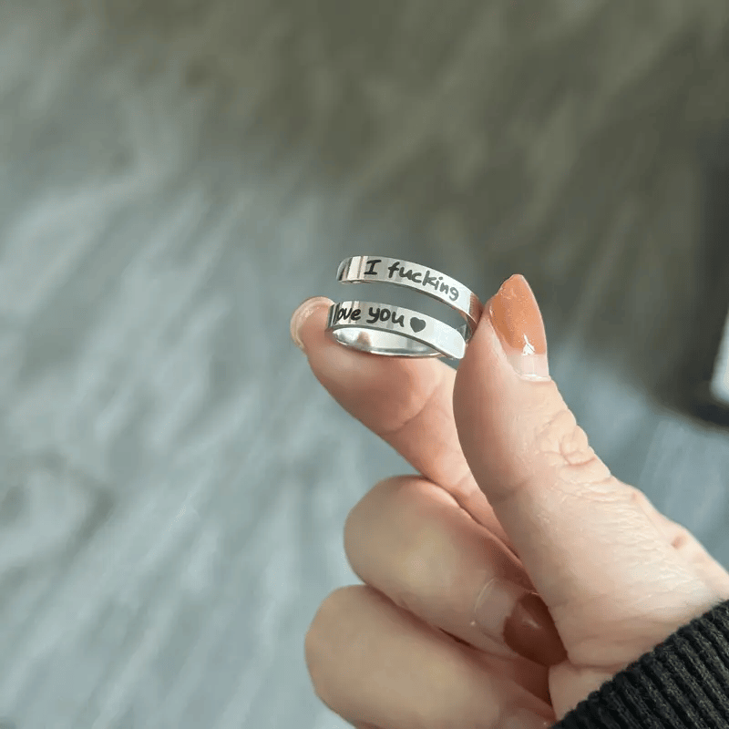 - The Adjustable “I Fucking Love You” Ring — polished silver-toned metal, built to last a lifetime.