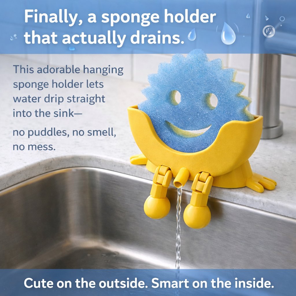 This cute hanging sponge holder is specially designed for smiley sponges, keeping them dry, clean, and happy 😊