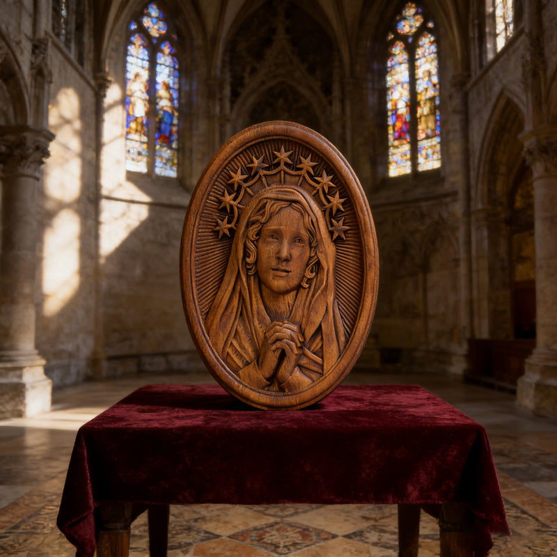 In a world that pulls your attention in a thousand directions, this hand-carved image of Our Lady of the Nine Stars restores what hurried living steals: a return to stillness, surrender, and trust. This carving is more than an ornament—it is a gentle companion inviting you back to prayer, recollection, and peace.